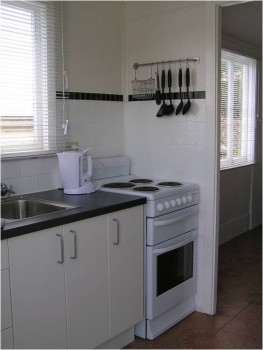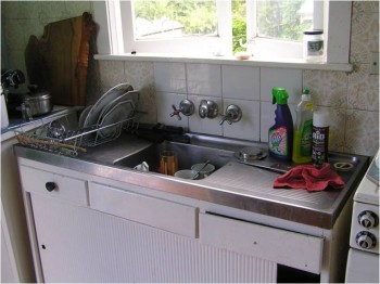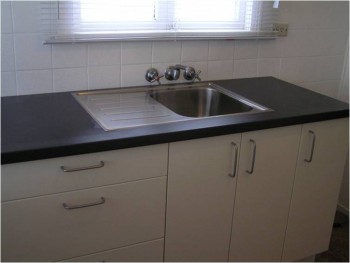 Another reason why we purchased this property was it had value add potential. Externally not a lot could be done, but there are a few things. In a way it is best left ugly as we don’t want to give council any reason to refuse an application for demolition. One of the best things with this block is it is solid and quiet internally thanks to the abundant use of concrete. All of the flats are in very dated condition and there were a lot of shabby curtains and dark wall colours. Light, neutral paint colours and some slimline PVC venetians (under $15 each from Spotlight) instantly made each flat feel about twice the size it was. Ikea flat pack kitchens were also an economical solution as the kitchens were only small. The tiles received a coat of tile paint and had an upmarket trim placed around the top. Lastly, the bulky, dated furniture was replaced with more stylish, smaller items that again made the flats feel larger.