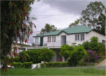 A lot of renovators dream of a house full of character: ornate ceilings, wide breezy verandahs, beautiful timber floors, large kitchen areas and potential for great street appeal. Unfortunately this property lucked out in all those departments. In an earlier life, many, many years ago, this would have been a large and graceful Queenslander, but not anymore. It is now four flats, somewhat randomly pieced together and done so by an Italian family with an appetite for concrete. The external walls are now concrete. The internal walls of the lower level are now concrete. The bathrooms and laundries now have concrete floors. There is a deck at the back made entirely of concrete, balustrade included. Possibly the worst part is the concrete deck at the front that is an extension rather than a typical under roof verandah. It stands out like a sore thumb. About the only character elements are the corrugated iron roof, which doesn’t quite fit with the rest of the dwelling now that the rest has been changed, and one wall of VJ in one of the upstairs flats. But this is all good news as the value is in the land, the land is zoned for units and has Demolition Control, and we are keen for any argument to persuade council to allow it to be knocked down in the future.