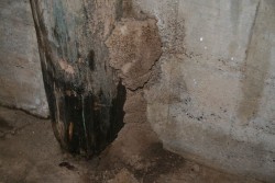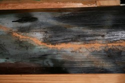 We had the benefit of a dark post here, so it was easy to see where the termites had tracked up the crack in the timber.