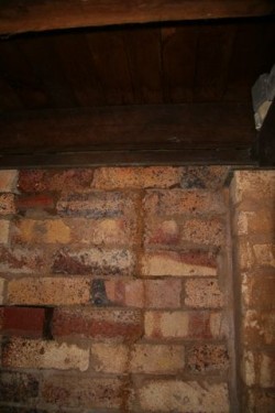 This mud pack (going vertically in the approximate centre of the photo) was located in about 1.2m of head height in a dark area under a house. A cursory glance would not have picked up this mud pack... look how well it blends in with the brown bricks.