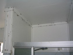 Initially the marks above this shower (and indeed around the rest of the bathroom) looked like mould, but once you stepped inside it became apparent that termites resided there!